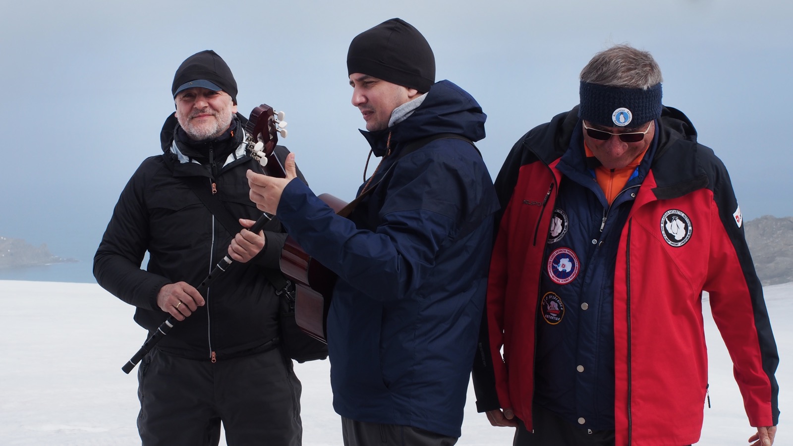 Пингвини и тюлени, които до идването на Теодосий и Хари бяха чували само плисъка на вълни и грохот на ледници, слушат редом със сурови изследователи непознатата им човешка музика …